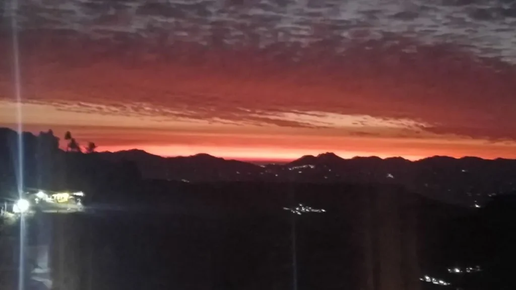 पर्यटन नगरी चकराता में प्रकृति की अनोखी कलाकारी विंटर लाइन दिखाई दी। सूरज ढलते ही आसमान में फैली सुनहरी, लाल और नारंगी रोशनी ने ऐसा दृश्य रचा, मानो किसी चित्रकार ने आकाश को रंगों की नर्म कूची से सजाया हो। इस अद्भुत नजारे ने स्थानीय नागरिकों और पर्यटकों को इतना मोहित किया कि हर कोई इसे अपने कैमरों में कैद करता नजर आया।